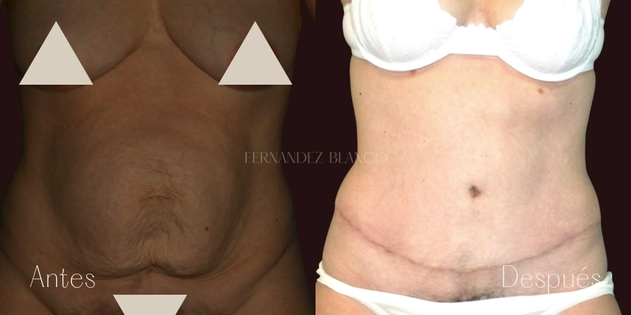 Classic dermolipectomy with repair of rectum and umbilical hernia after multiple pregnancies.
